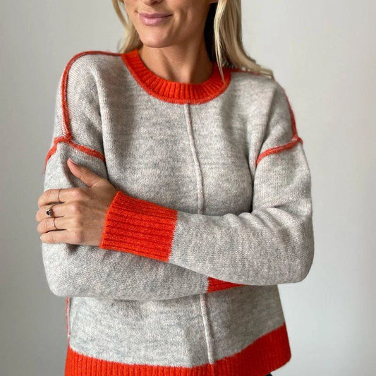 Bridget Colorblock Crewneck Heather Grey/Orange