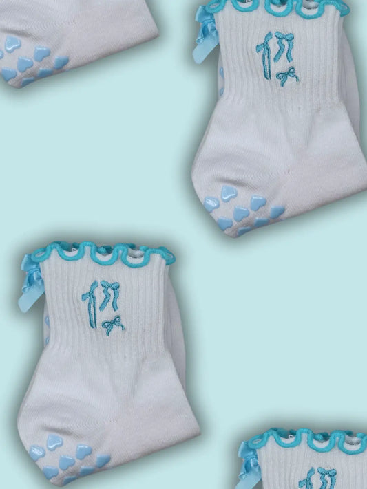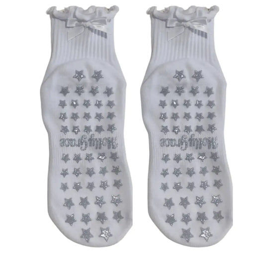 White Ruffle Bow With Silver Star Grips Pilate Socks