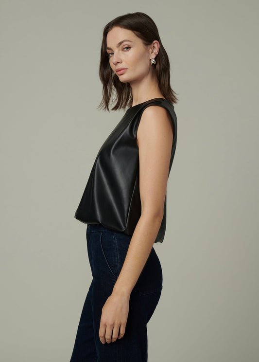 The Maeve Leather Sleeveless Tee Black