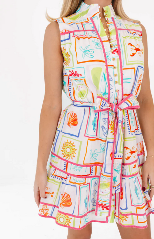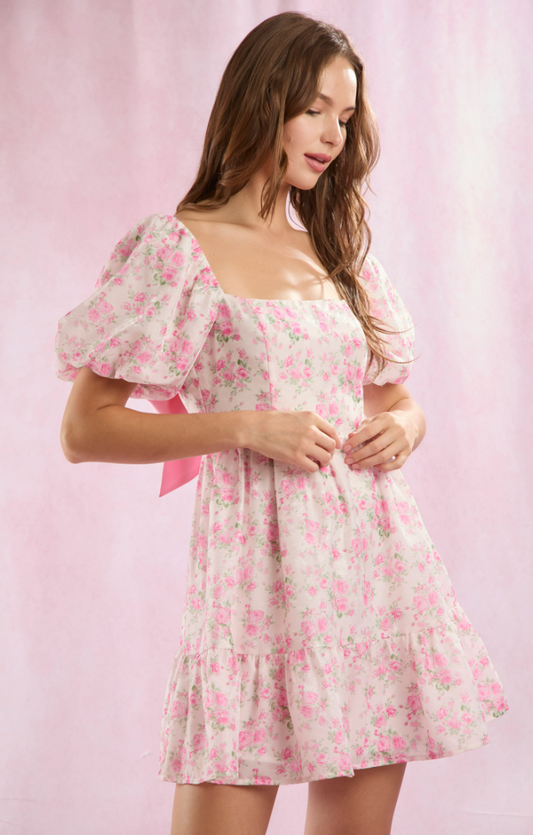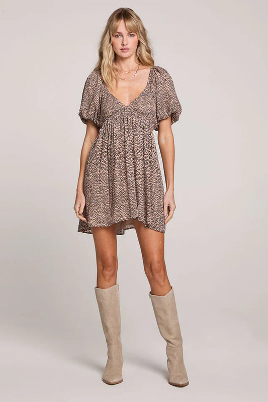Divine Ruched Long Sleeve Mini Dress - ivory multi