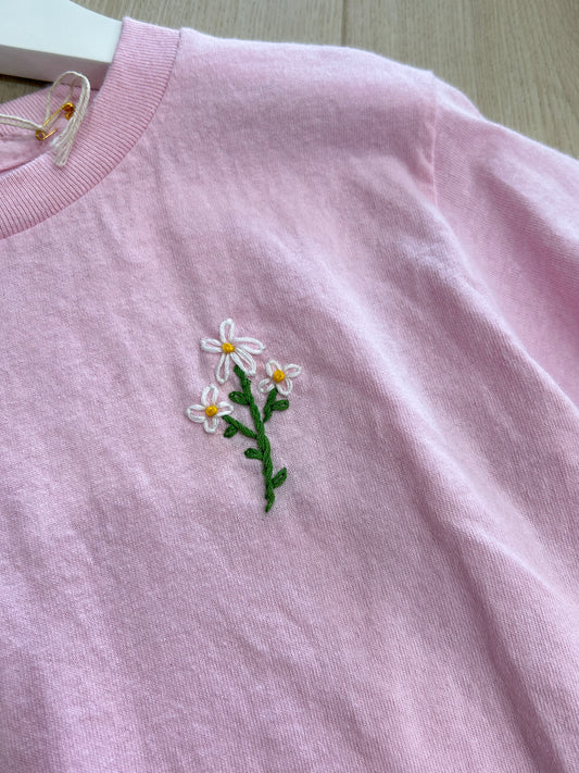 Cotton Dainty Floral Onesie w/ Denim Collar