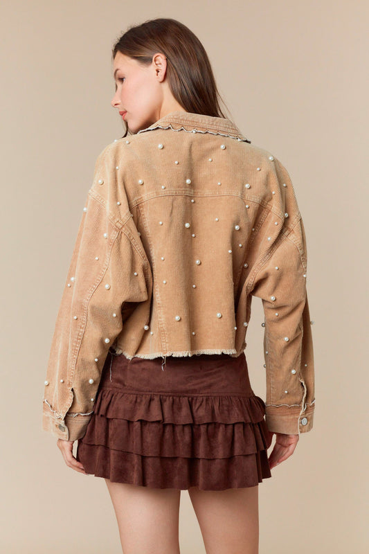 Pearl W/ Scallop Detail Washed Corduroy Jacket