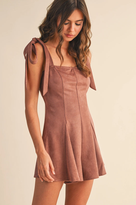 Suede Tied Shoulder Romper - Dark Rose