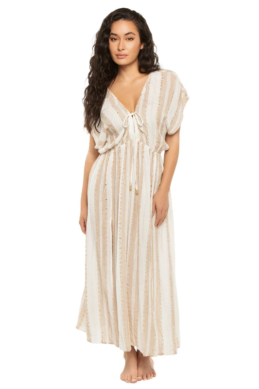 Natural Stripe With Lurex Coverup