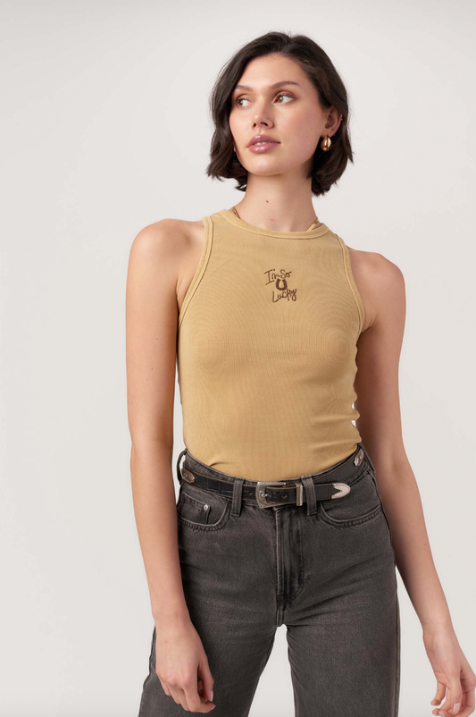 I'm So Lucky Embroidered Tank, iced coffee