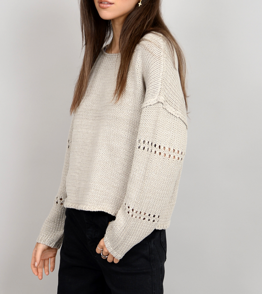 Arlo Long Sleeve Boat Neck Pullover- Sand Stone