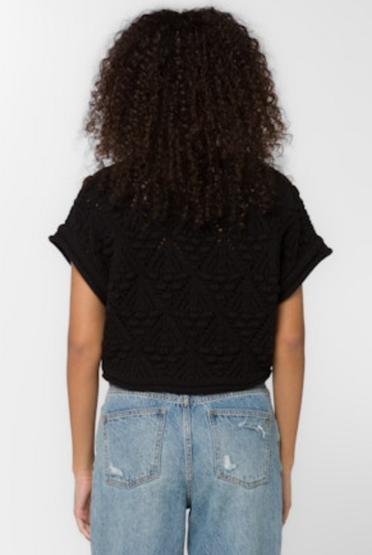 E'Toile Cable Cardigan Short Sleeve, Petal