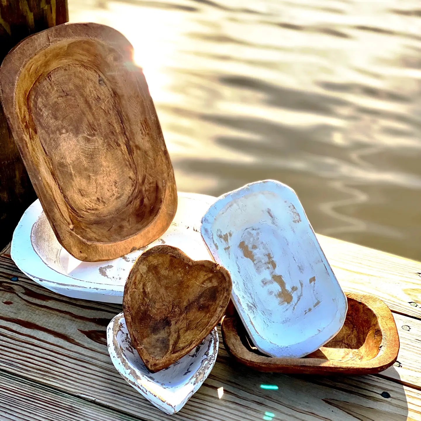 Dough bowls are handmade of Spanish Oak and measurements are not exact. Dough bowls are made to look rustic and have marks and rough edges on purpose.