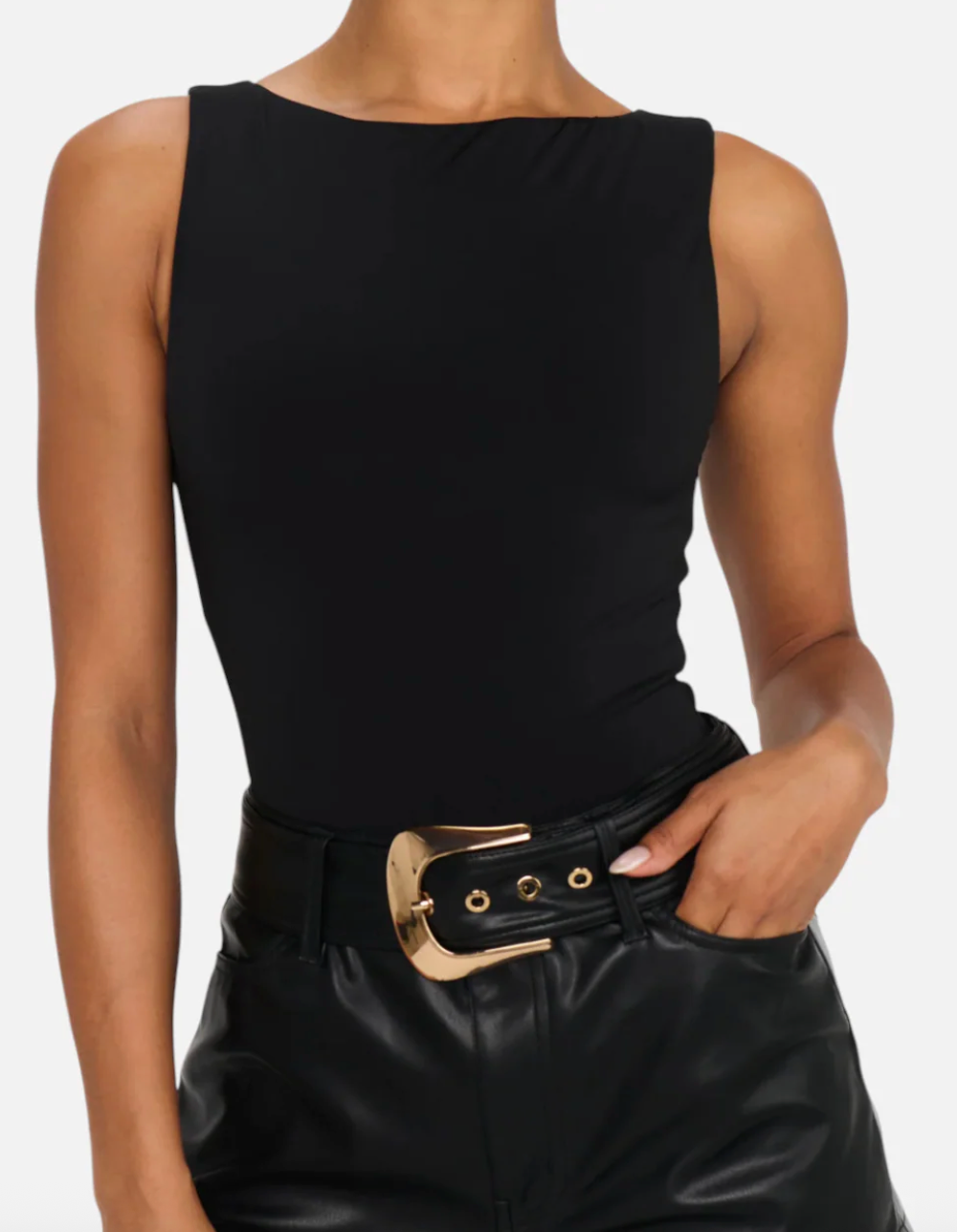 The 90's Bodysuit delivers timeless sophistication with its sleek black silhouette and commanding high neckline. This versatile piece channels retro minimalism while maintaining contemporary edge—perfect for layering under sheer fabrics or wearing as a standalone statement. The fitted construction flatters your frame, while the high neck adds an element of refined coverage and visual interest. Whether styled with vintage denim, leather skirts, or tailored trousers, this bodysuit transitions effortlessly from day to night. A wardrobe essential that transcends trends.