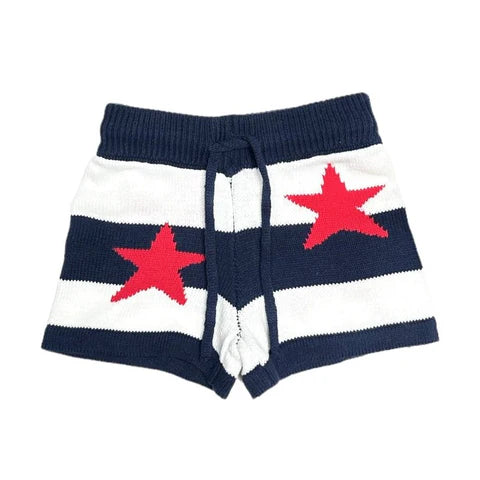 Bold stars and stripes come together in a chic pattern on these charming Beach Riot Kids shorts. The knit fabric makes them incredibly comfortable while also ensuring they’re stylish for summertime. Add the matching sweater to create a two-piece look that is totally trending.