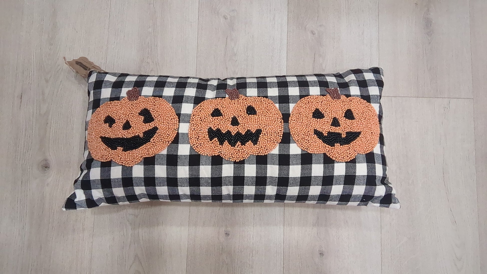 This Halloween, add a touch of elegance to your home decor with our Beaded Pumpkin Halloween Pillow. The intricate beading on this pillow showcases a stunning pumpkin design, making it the perfect accent piece for your spooky festivities. Made with high-quality materials, this pillow is both stylish and durable.